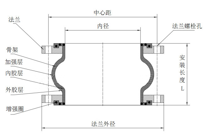 注:1、特殊要求可按用戶圖紙制作,法蘭標準采用GB/T9115.1-2000,可選配(GB、JB、HG、CB、ANSI、DIN、BSEN、NF、EN、JIS、 ISO等)法蘭標準生產(chǎn)。2、懸空給水使用DN200以上產(chǎn)品,管道必須有固定支撐或固定托架,否則產(chǎn)品應安裝防拉脫裝置。 3、用戶使用橡膠接頭,對應法蘭應是閥門法蘭或符合GB/T9115.1-2000法蘭。 Notes: 1. For OEM orders with special requirement, rubber joints can be made according to customers' drawings. Generally, flange standard is GB/T9115.1-2000, other GB, JB, HG, CB, ANSI, DIN, BSEN, NF, EN, JIS, ISO flanges are also available upon request.2.When rubber joints size above DN200 are used for overhead water supply system, the pipes must be equipped with fixed supports or fixed brackets, otherwise control units shall be installed on rubber joints. 3.Matching flanges of rubber joints shall be valve flanges or GB/T9115.1(RF) flanges. |
